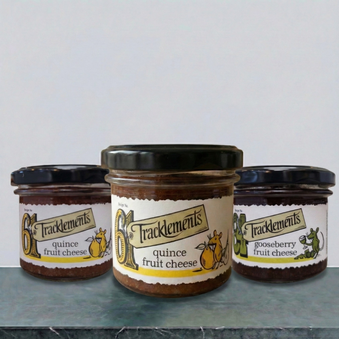 All three fruit cheeses in one set. You get quince, damson, and gooseberry. It is a simple way to build a full cheeseboard and try a range of flavours.